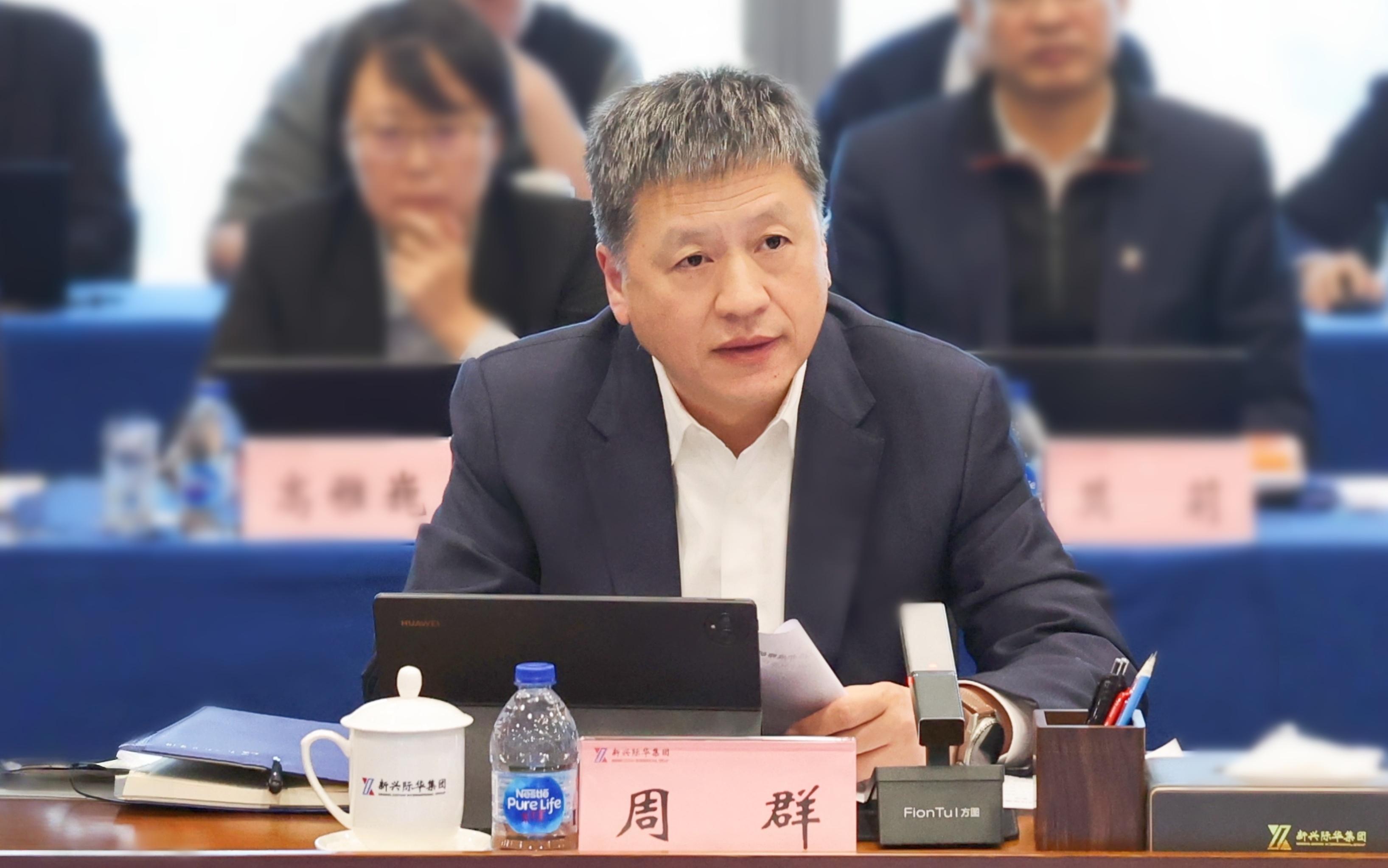 集团公司党委书记、董事长周群出席会议并总结讲话。党委副书记、董事、总经理杨旭,集团公司董事吴同兴、曲大庄、李树廷、庄小雄、彭碧宏、雷平,集团公司领导张同波、徐建华、王社教、陈一军、安胜杰出席会议并作研讨发言。